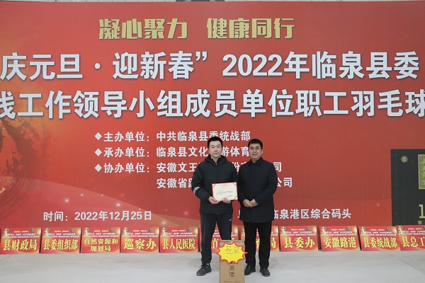 赛前致辞中,临泉安建项目公司总经理陆林向参赛单位介绍了路港公司及临泉港码头,向参赛选手致以美好祝愿。赛场上,参赛选手全神贯注,斗志昂扬,扑球、搓球、放网、挡网、劈杀、扣杀等羽毛球技术相继呈现,一招一式尽显功底,处处体现着选手们精湛的球技。经过三个小时的激烈角逐,路港公司参赛选手彭勃斩获冠军。